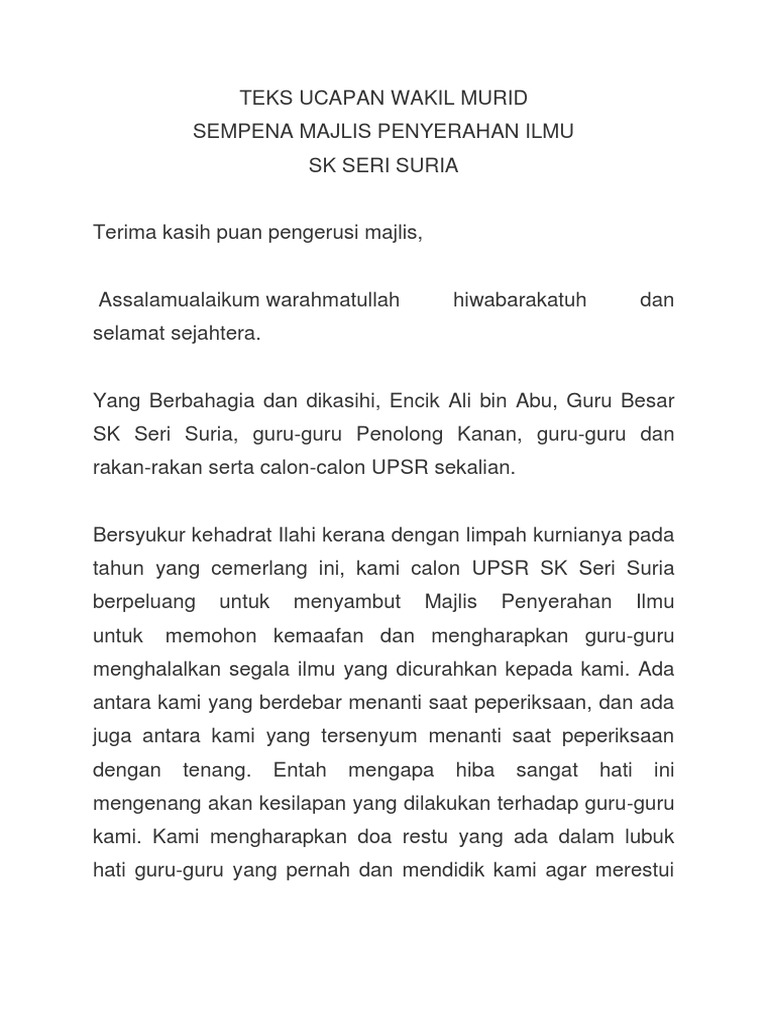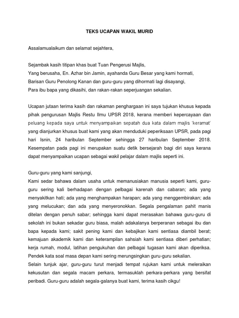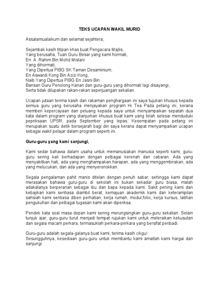 Teks Ucapan Wakil Murid Scribd Pdf