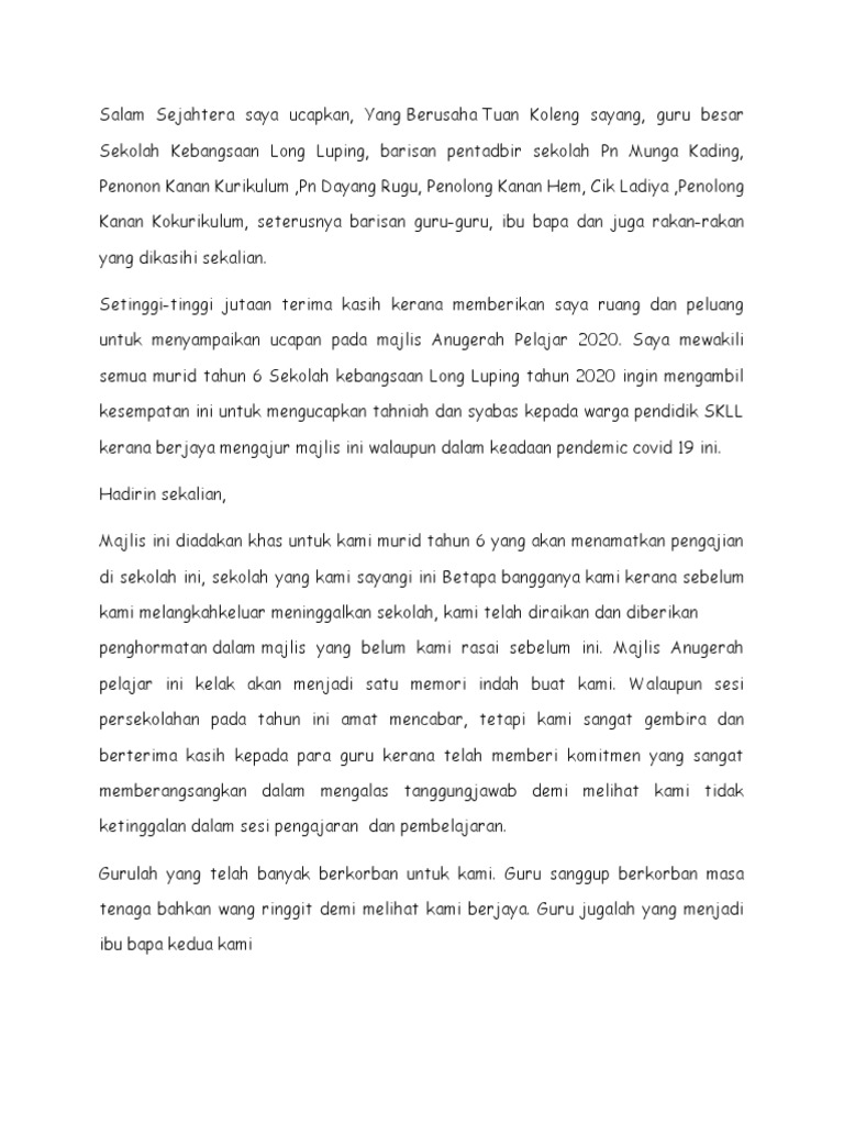 Upsr Ucapan Wakil Pelajar Majlis Perpisahan Guru Besar Blog Majlis My 2021